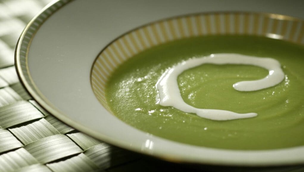 A zöldborsókrémleves igazi mentsvár, ha valamilyen intenzív ízélményre vágyunk, egy olyan időszakban, amikor már nem sok zöldség fordul meg a piacon, és maradnak a fagyasztott verziók.