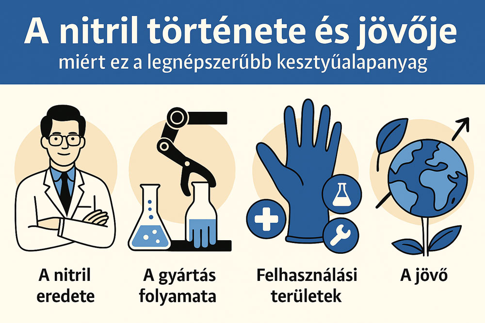 Ez indította el a kutatásokat alternatív anyagok irányába. A nitril – más néven nitril-butadién gumi – a 20. század közepén vált elérhetővé szintetikus alapanyagként, amely mentes a latexfehérjéktől, így ideális választássá vált az érzékeny bőrű felhasználók számára. A nitril kesztyű gyorsan meghódította az ipart is, mivel kiválóan ellenáll olajoknak, vegyszereknek és mechanikai behatásoknak is.
