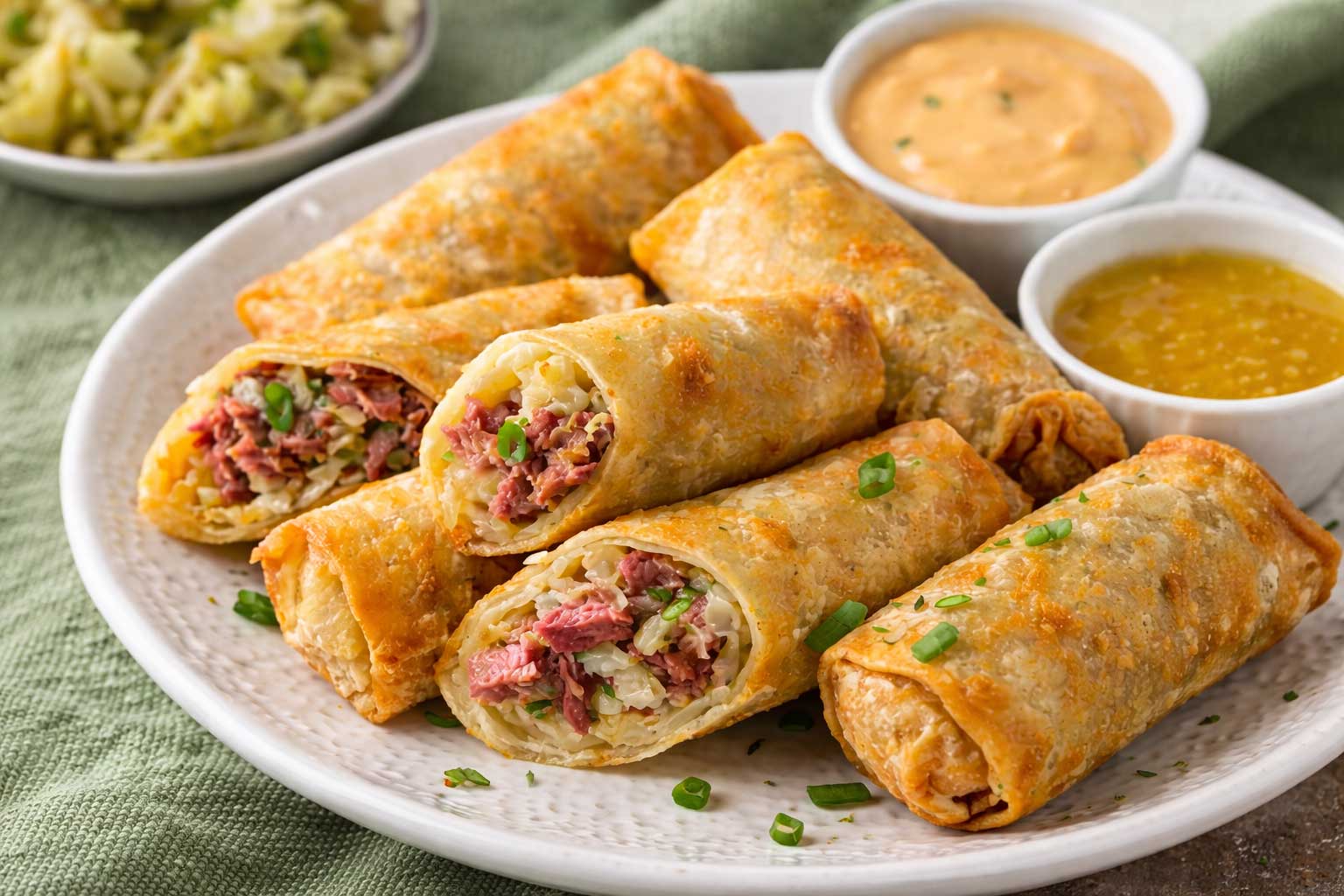 A történet szerint ez a különleges tekercs Detroitból indult, ahol egy vietnámi származású szakács merész ötlettel a sós marha apró darabjait ropogós tésztába csomagolta és forró olajba merítette. Az eredmény kívül aranybarna, belül krémesen sós-fűszeres, enyhén csípős, mégis kiegyensúlyozott töltelék lett. Azóta az ír tematikájú étlapok egyik titkos kedvence, főleg Szent Patrik-nap környékén.